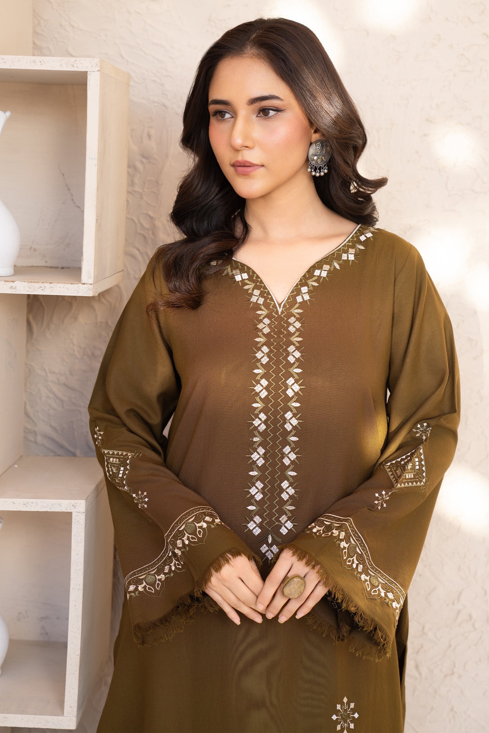 Step into effortless elegance with this beautifully crafted Marina outfit, designed for women who love minimal yet graceful details. The soft earthy tone is enhanced with delicate embroidery on the neckline, sleeves, and hem, creating a refined and timeless look. Its relaxed silhouette ensures all-day comfort, making it perfect for everyday wear, gatherings, and semi-formal occasions.